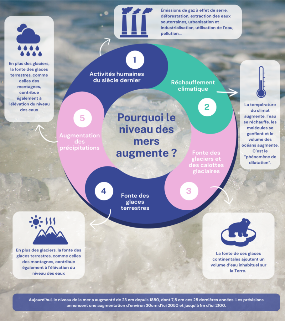 Comprenez tout d’abord les mécanismes qui engendrent cette élévation continue du niveau des mers et des océans.